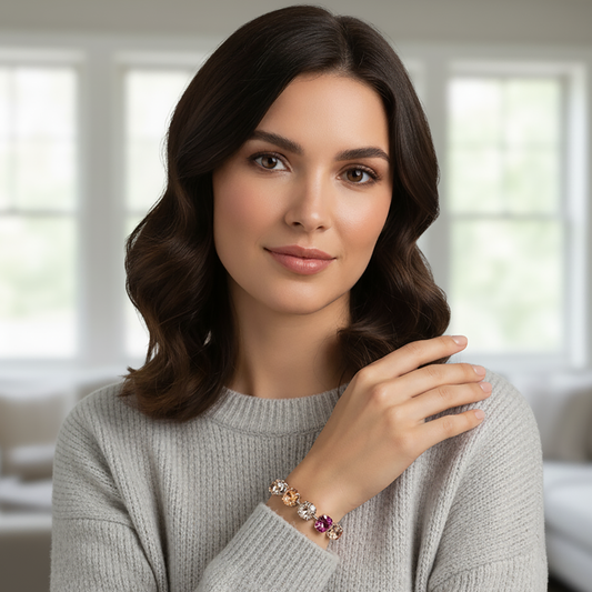 Here you'll find all jewelry pieces featuring rivoli cut Swarovski® crystals.  "Rivoli stands for simplicity and elegance. The sharp lines of this cut form a geometric pattern with high-precision faceting that results in a subtle yet clear brilliance."  Build your own custom look by mixing + matching.