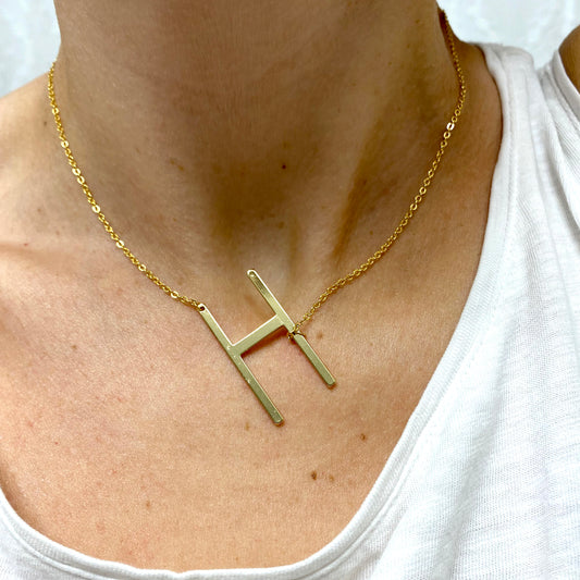 Chunky Paperclip Toggle Initial Necklace • Hammered Pendant