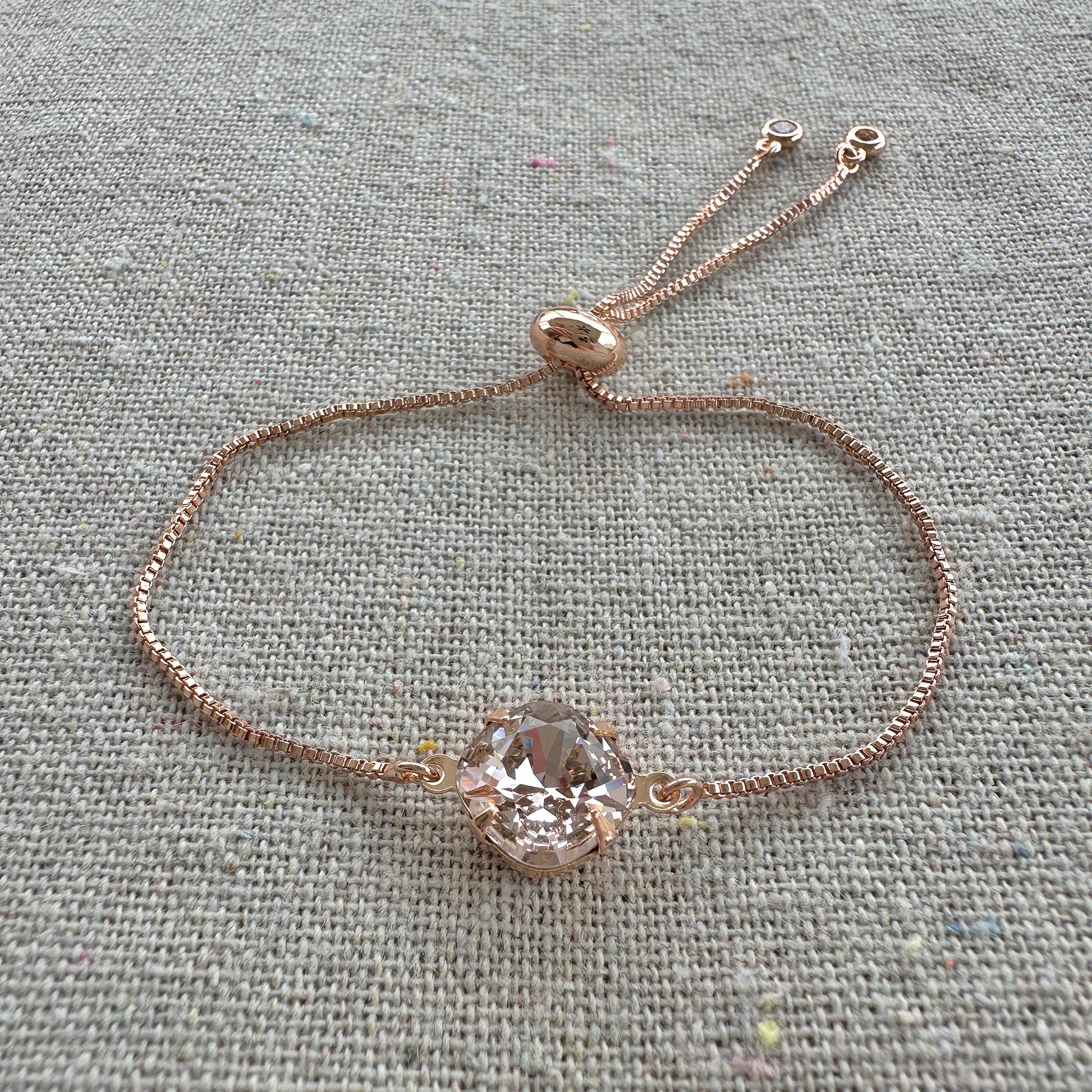 This bracelet features a sparkling 10mm Swarovski® crystal in a cushion cut design. The box chain and sliding clasp make it super easy to put on and off, and it adjusts to any desired length. Add a touch of glamour and versatility to any outfit with this stunning and comfortable bracelet.