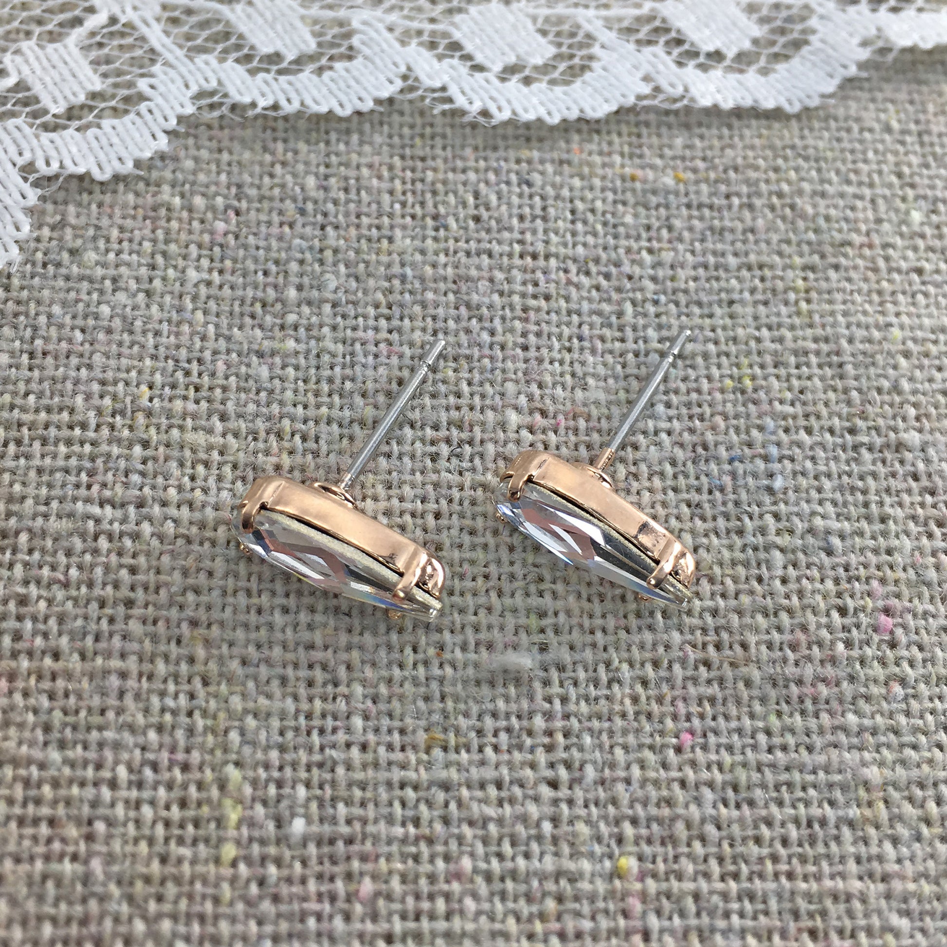 Edgy dagger earrings made from inverted Swarovski® crystal raindrops set in plated brass. Shown in crystal and rose gold.