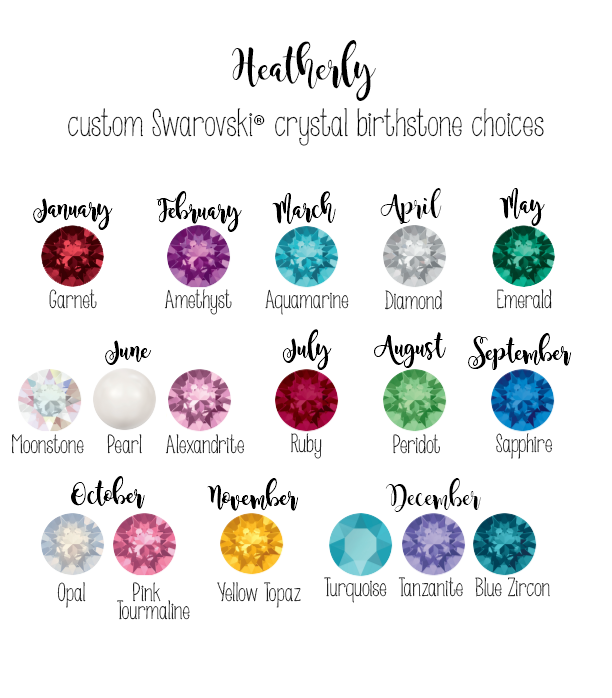 A delicate daily reminder of who you are and when you were born, just in case someone asks and you can't remember because you haven't had your coffee yet. A single Swarovski® crystal chaton in your choice of birthstone color (if you're lucky, your month has more than 1 choice!). Don't like your birthstone? Don't worry, you can choose any color you like, I won't tell anyone it's not your birthstone. These make perfect birthday gifts too.