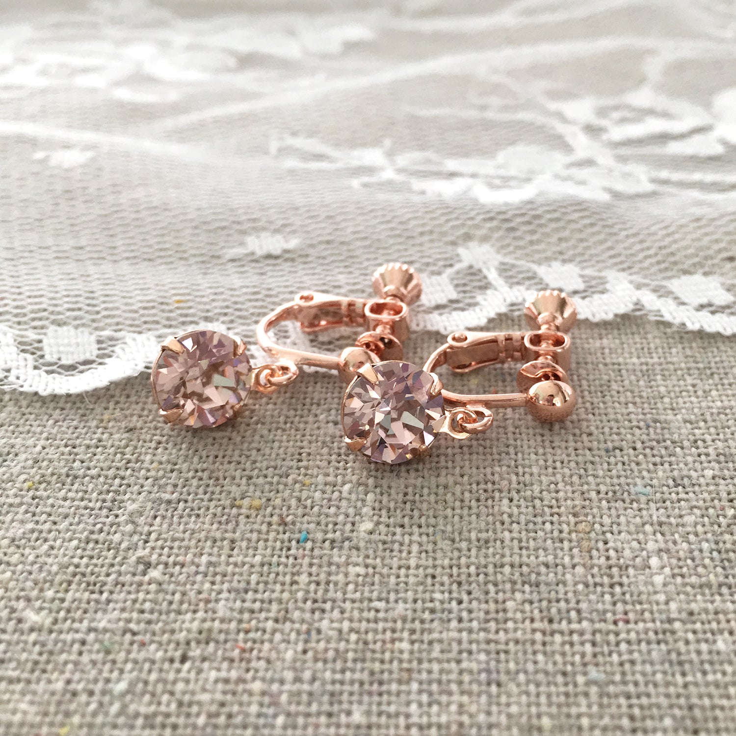 The perfect dangling earrings if you don't have your ears pierced. These earrings are screw back clip-on earrings, although they may not look like it. The earring findings clip onto your earlobes but can also be adjusted to fit comfortably thicker or thinner lobes just but adjusting the screw backings. Dangling beneath is a Xirius cut 8mm Swarovski® crystal.
