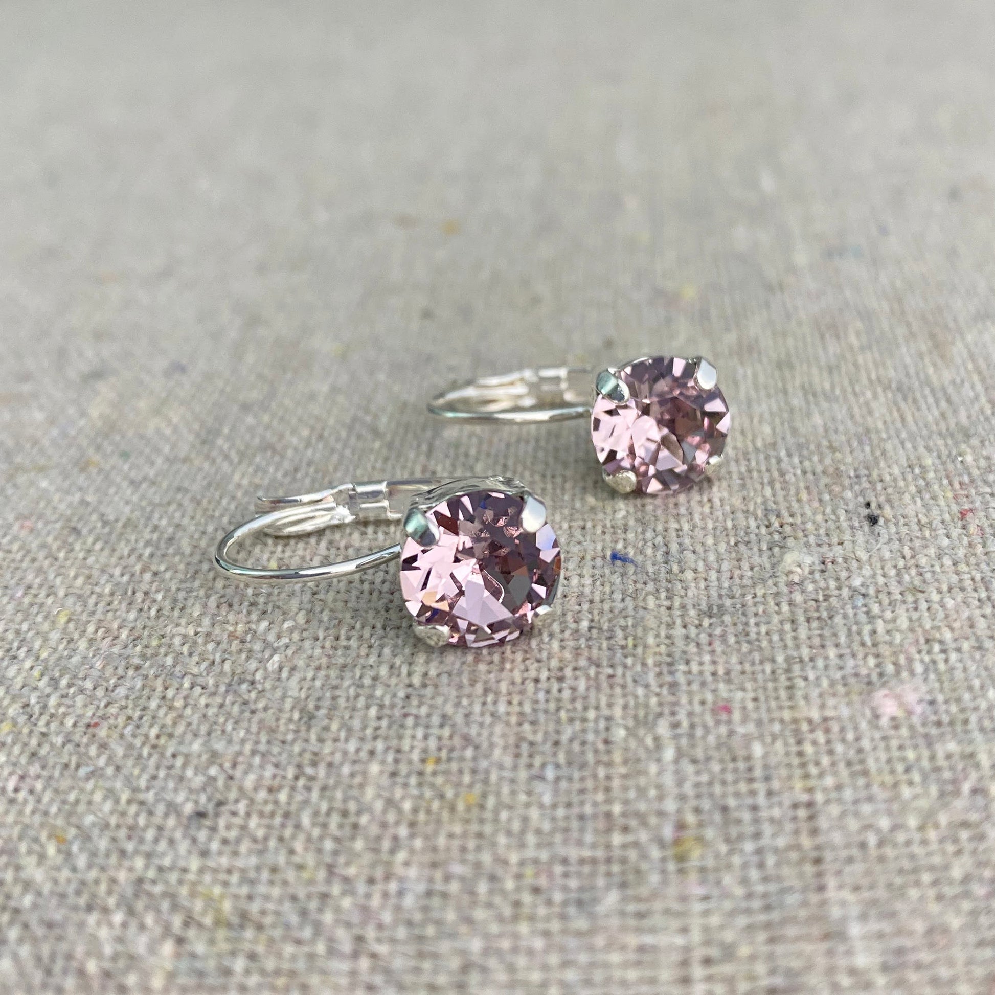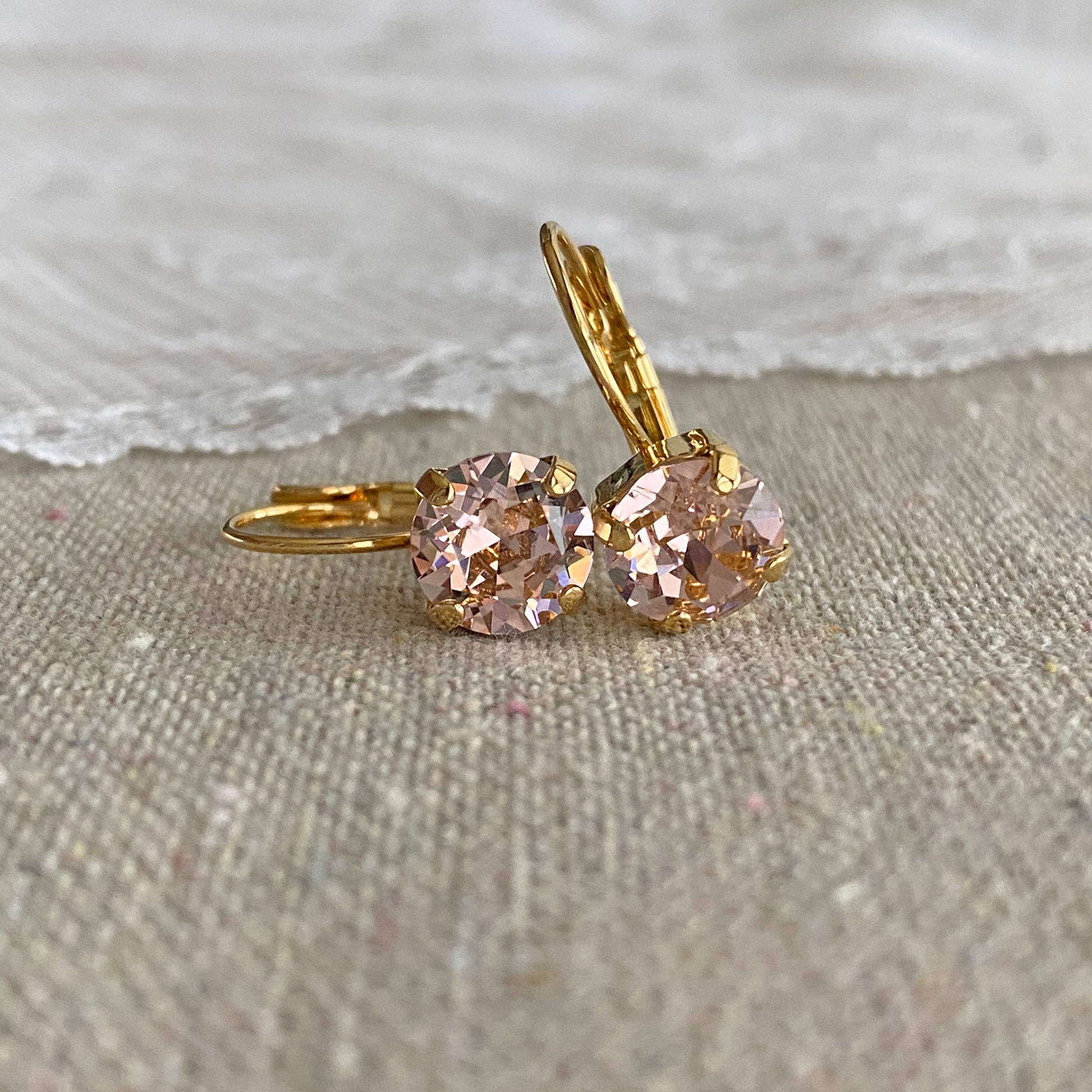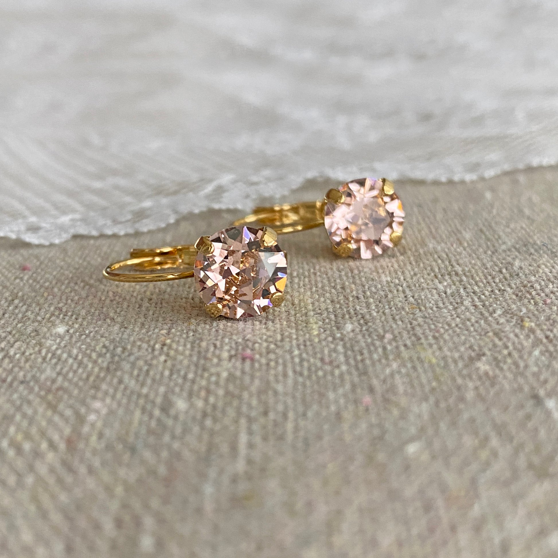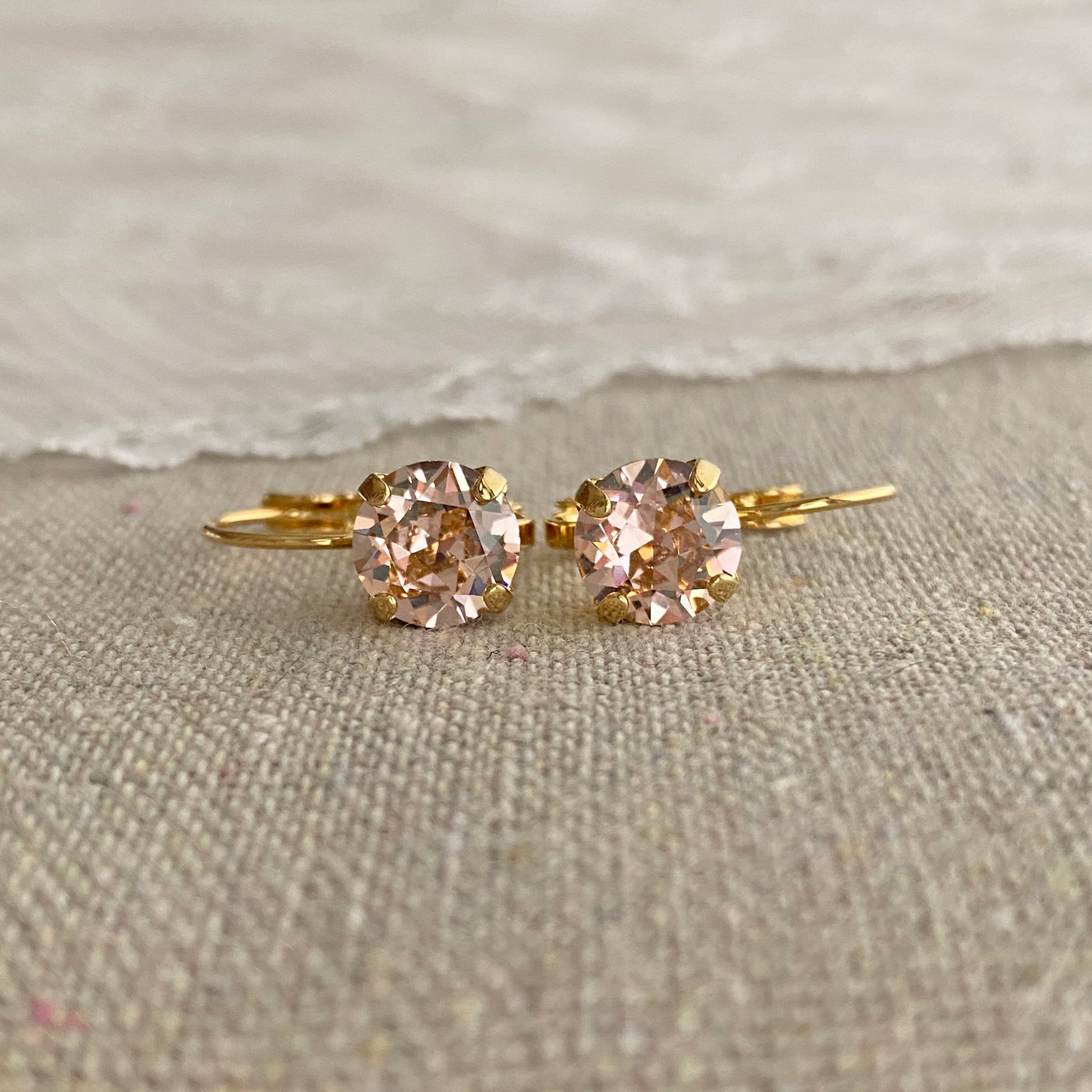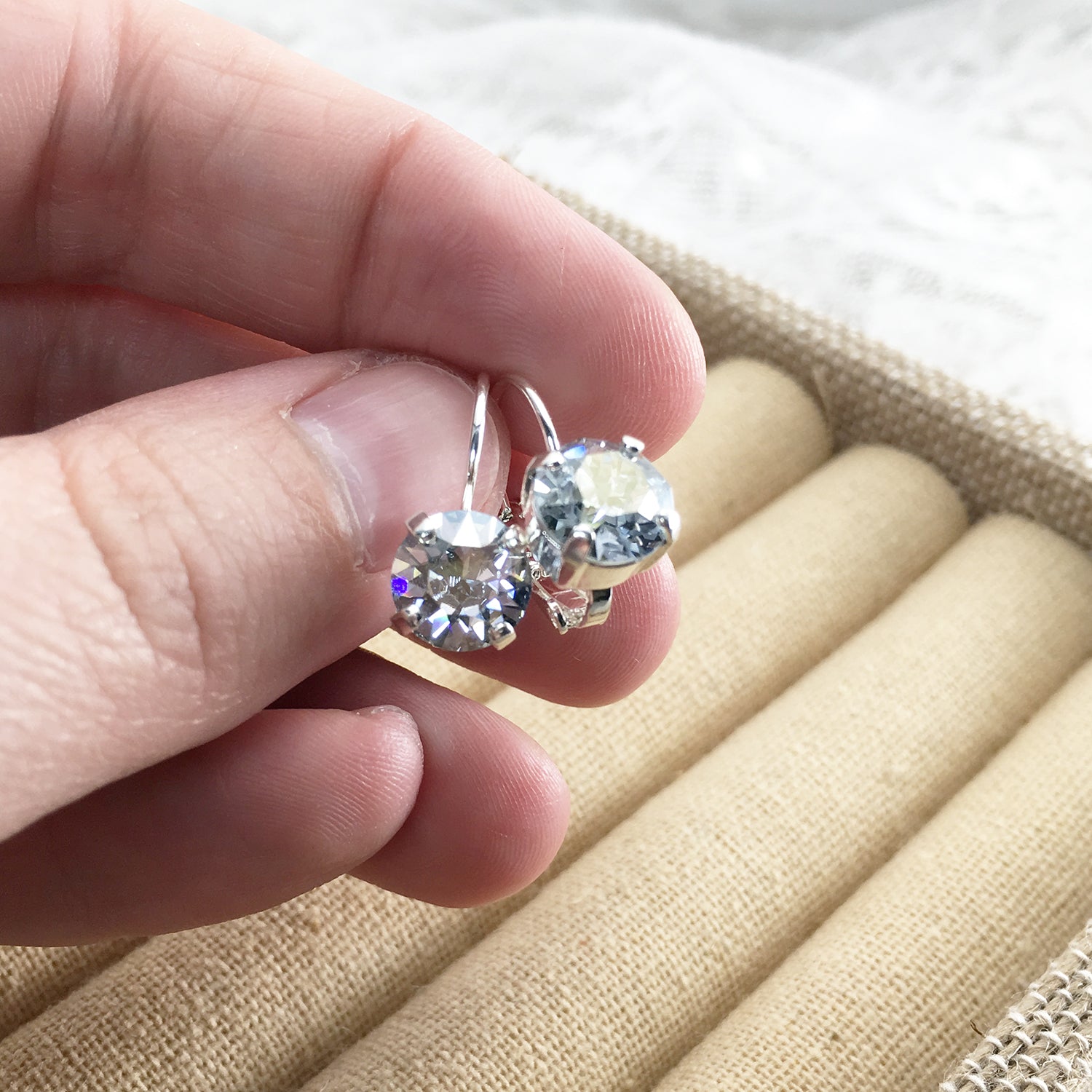 Xirius cut Swarovski® crystals set snugly in basic precious metal plated brass prong settings for a simple, chic everyday look. Dress these stunning earrings up for a wedding or casually for everyday wear.