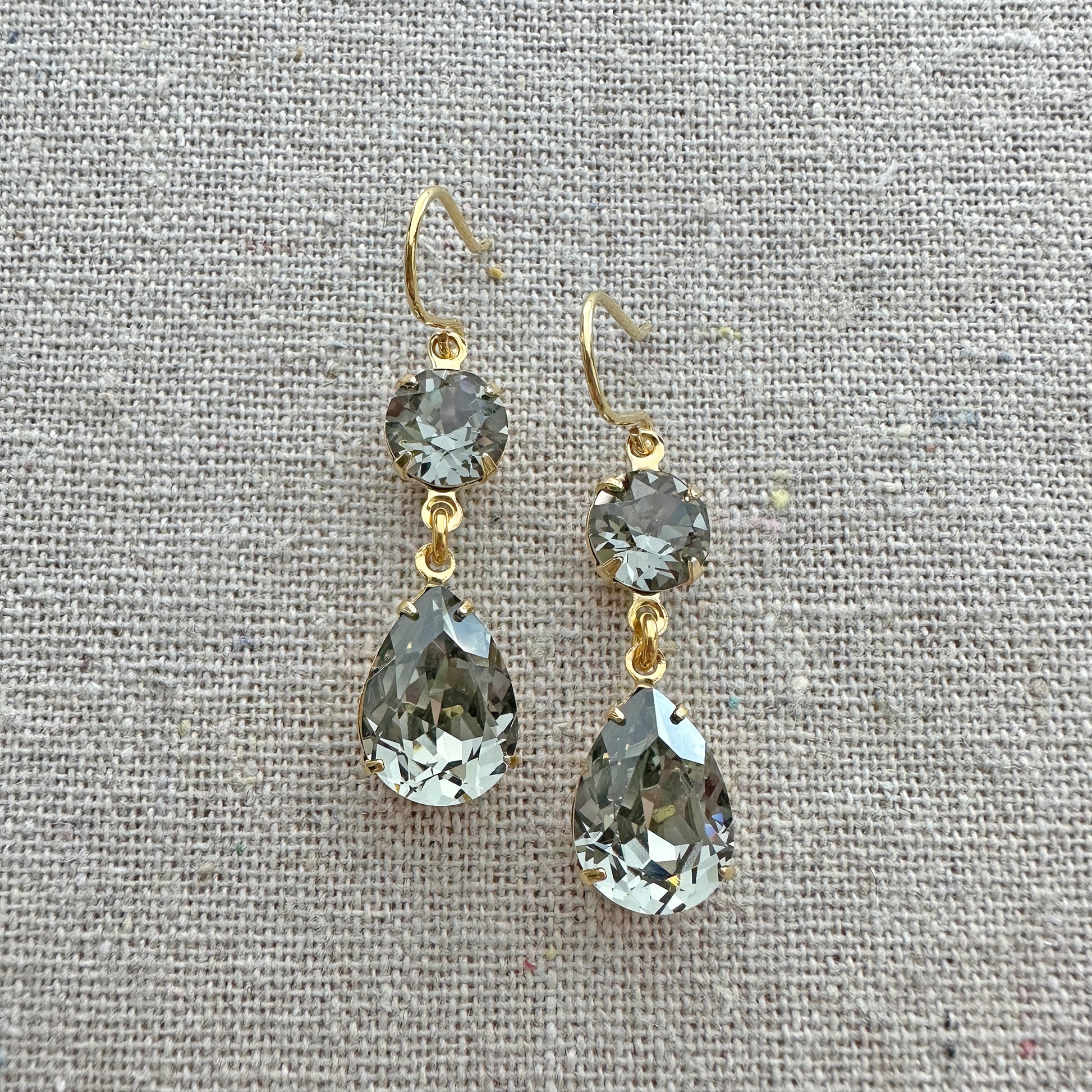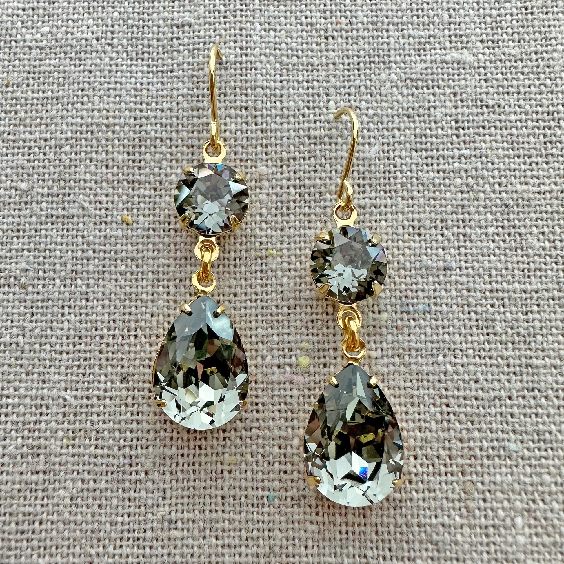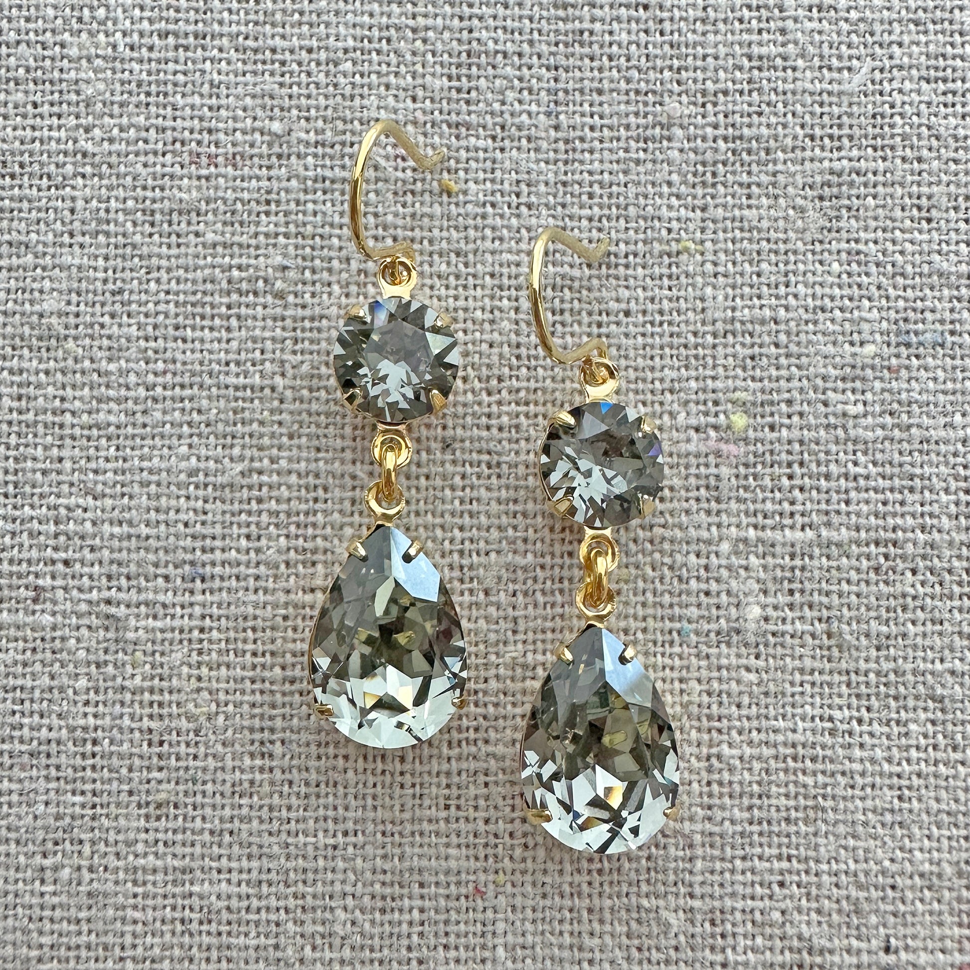 Extra fancy dangling earrings featuring brilliant cut and pear cut Swarovski® crystals. Just the right amount of movement and sparkle, these earrings are perfect for making a statement.