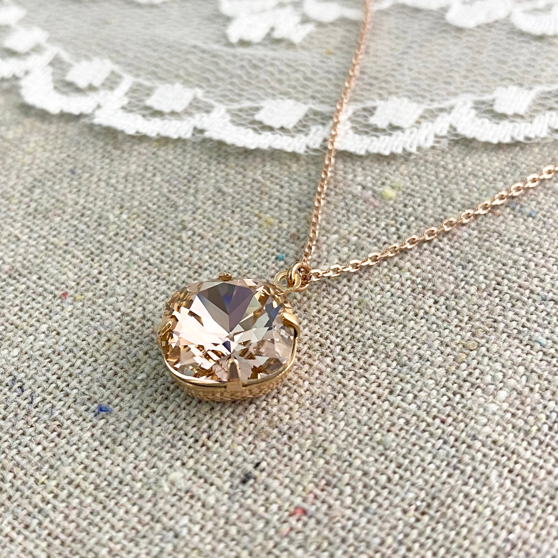 Oh yes, the simpler things in life are often the best. Take this cushion cut pendant necklace for example, it's simple, chic and full of sparkle without weighing you down. Featuring a sparkly cushion cut Swarovski® crystal on an adjustable length dainty chain necklace. Shown in Blush Pink crystal and rose gold finish.