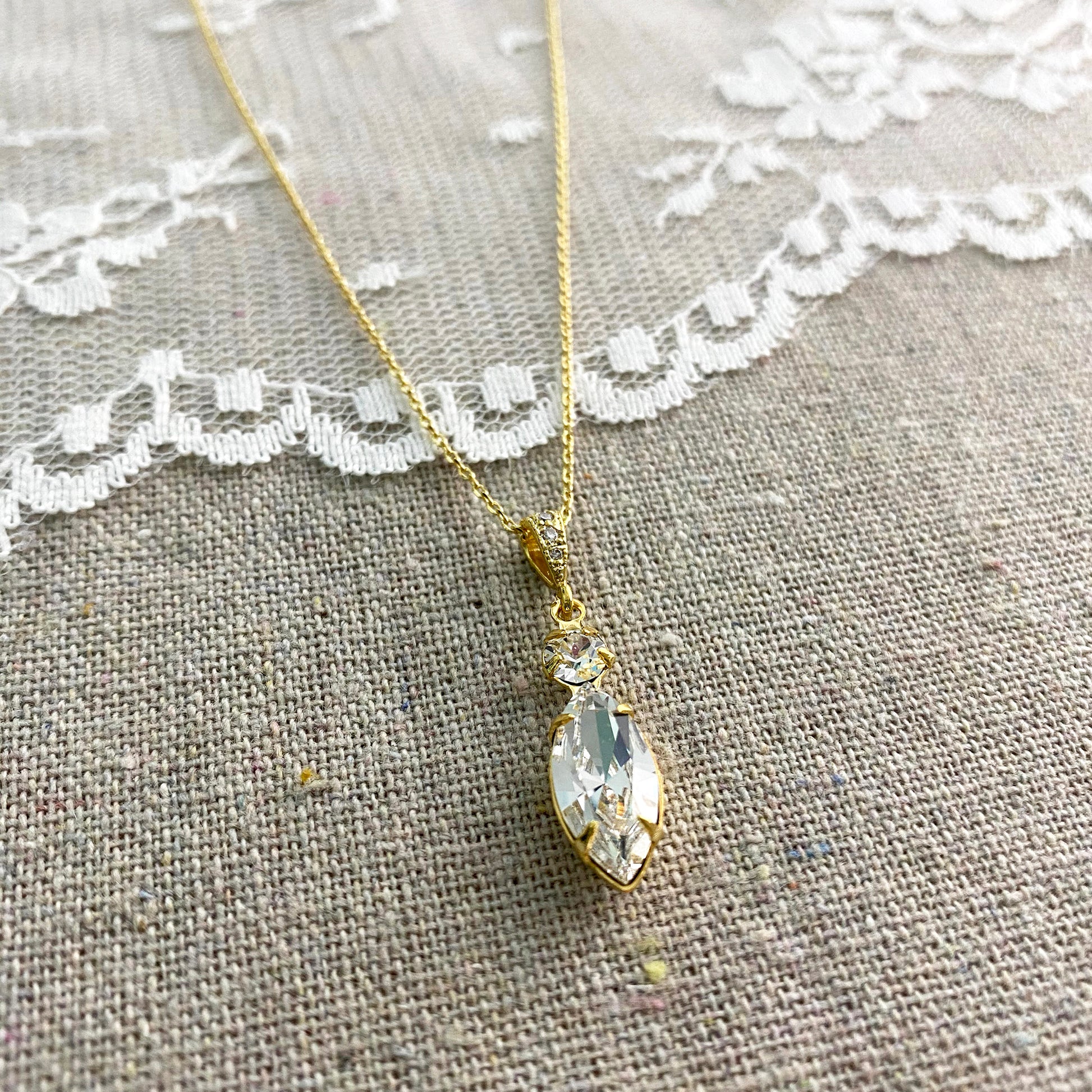 A dainty yet elegant necklace featuring a pendant made with Swarovski® crystals hanging from a cubic zirconia pavé bail on a delicate cable chain that's adjustable.
