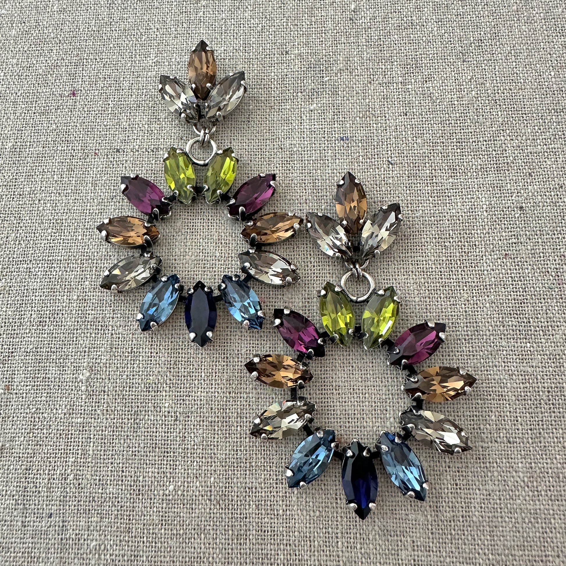 Sure to be a conversation starter and show stopper, these earrings are breathtakingly beautiful and make a bold statement. Featuring dozens of sparkling 15 x 7mm marquise Swarovski® crystals in a carefully curated color palette.