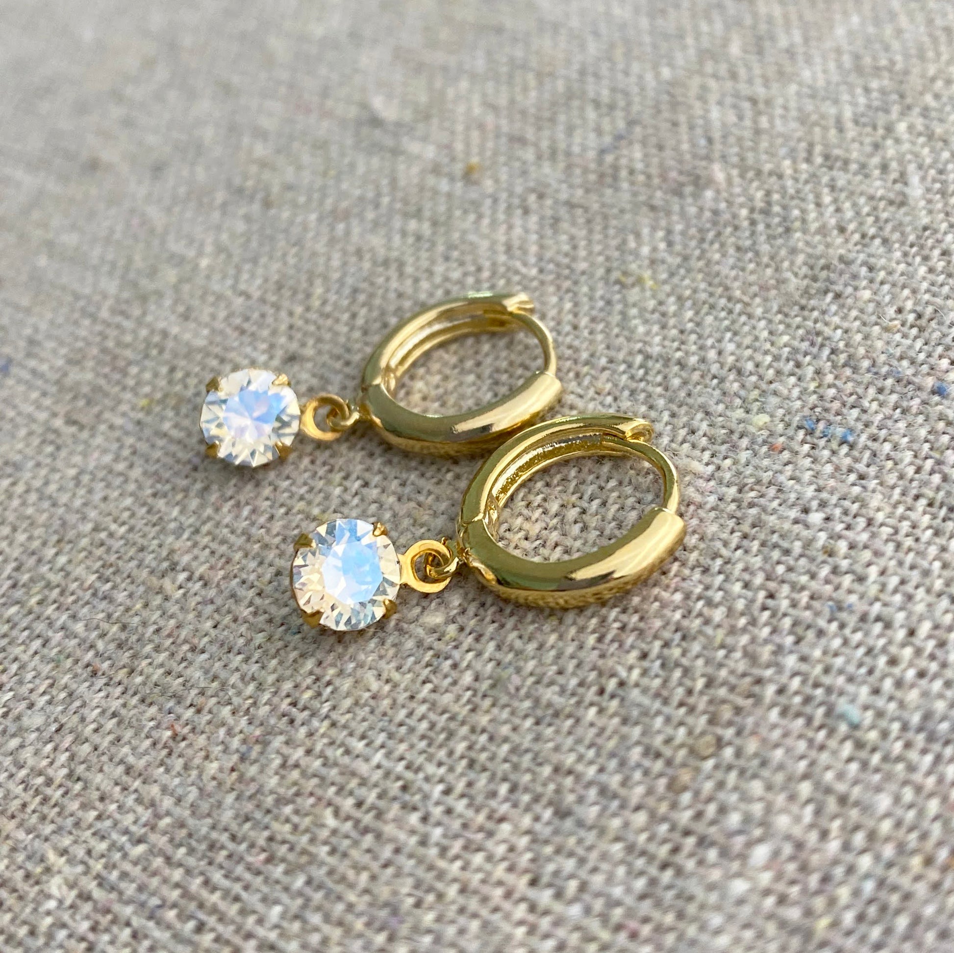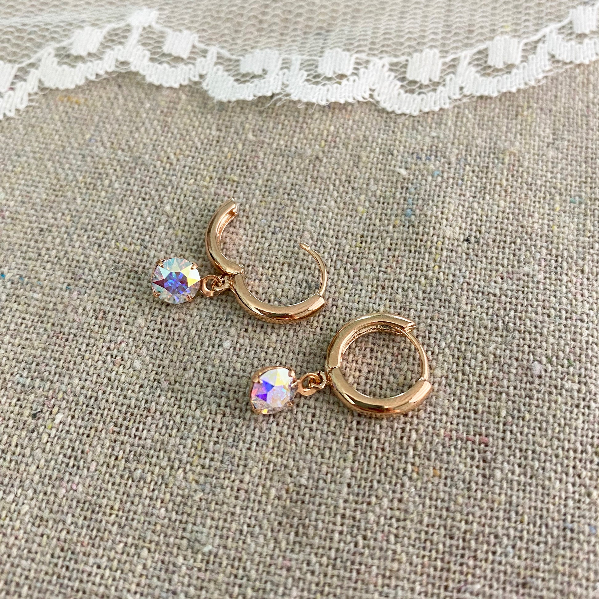 Darling little hoop earrings that hug close to your lobes. Dangling beneath are tiny 5mm Xirius cut chaton Swarovski® crystals. The absolute perfect accessory for adding a touch of sparkle while still being minimalist.