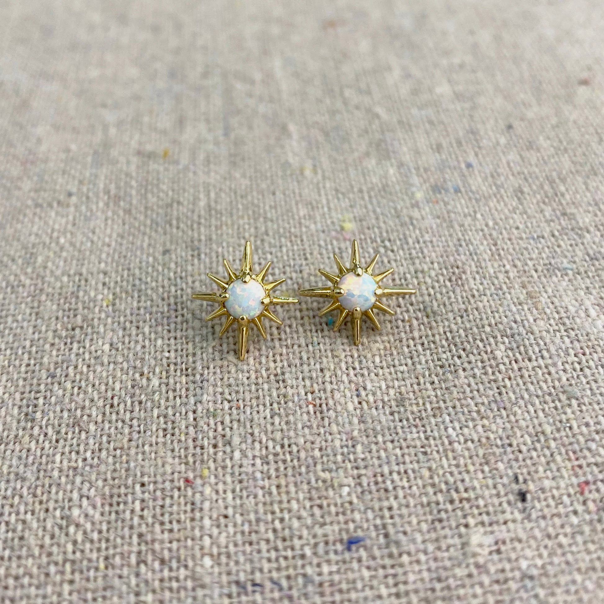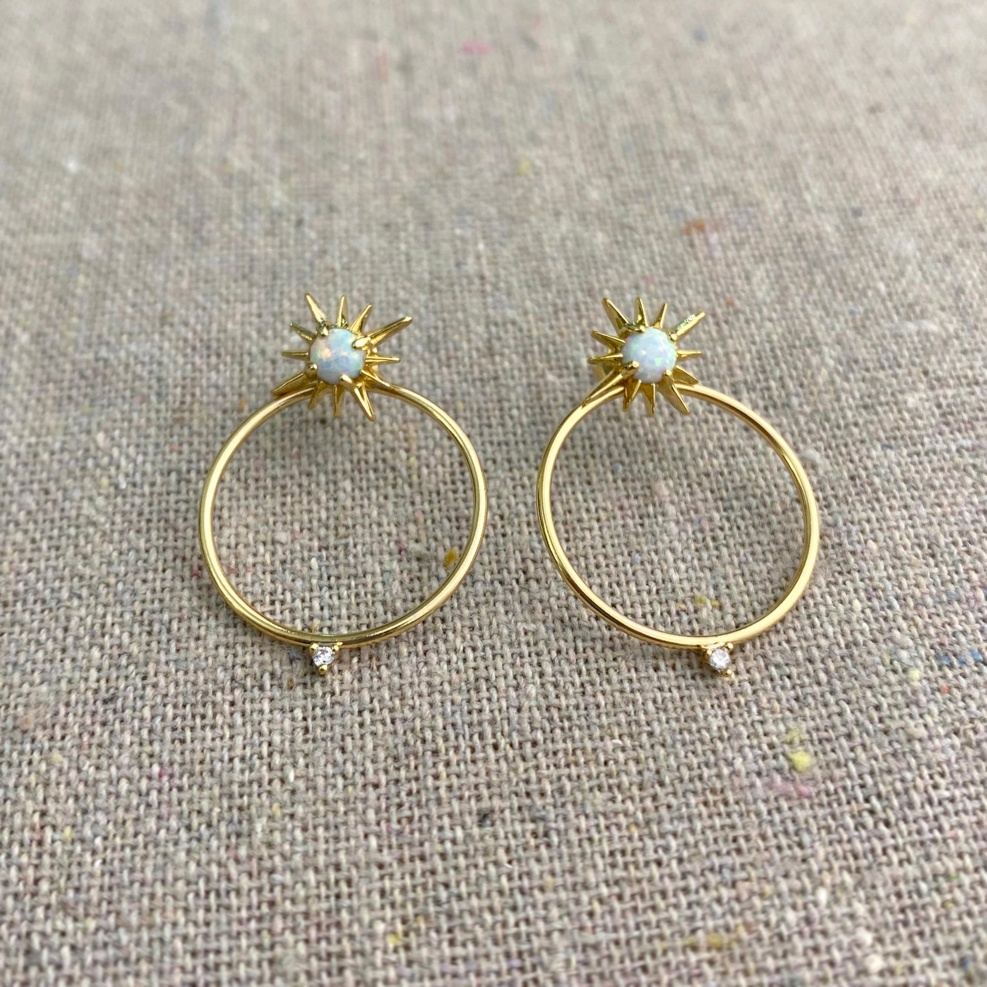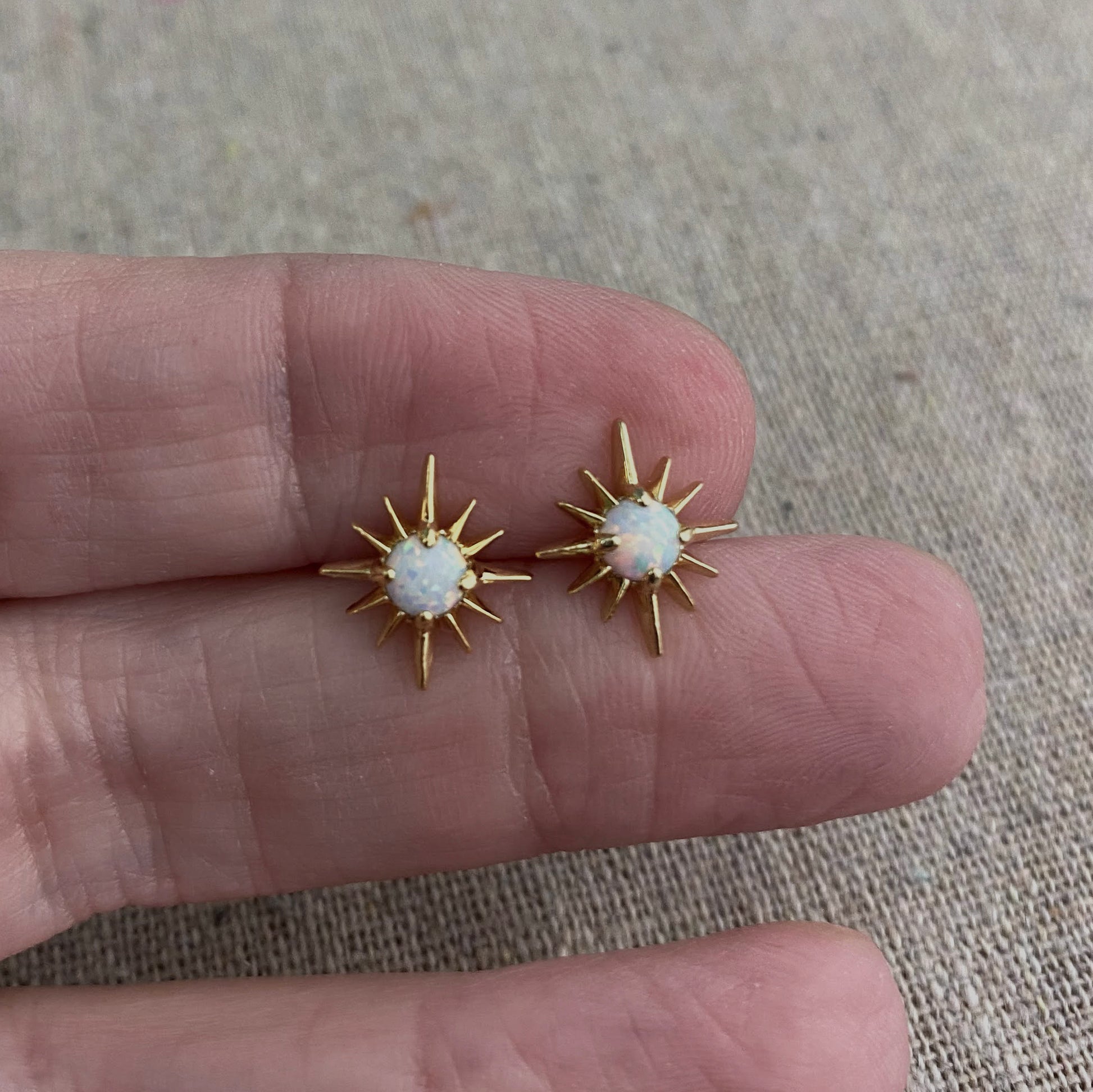 The sweetest Polaris earrings you can wear 3 ways. Small white lab created opals set in the center of Polaris post earrings that you can wear with or without the delicate ear jacket finished off with the tiniest cubic zirconia detail.