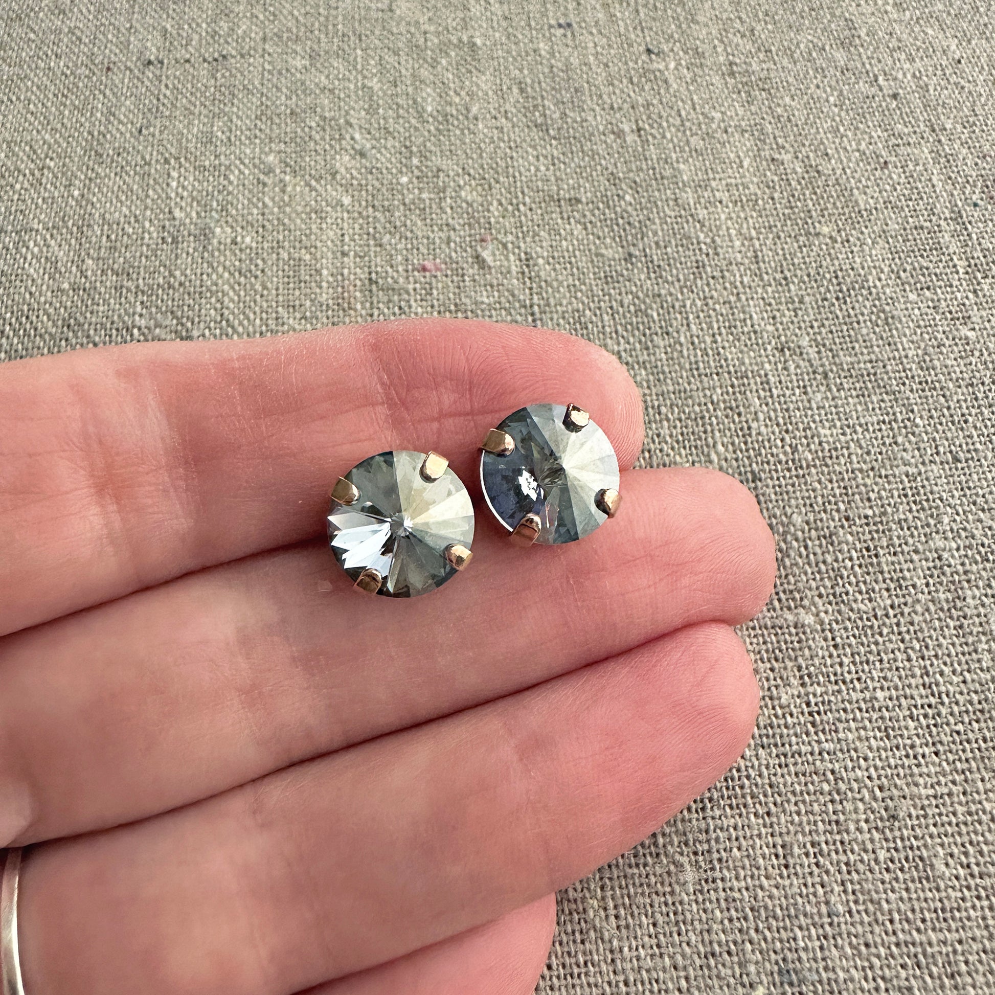 The perfect marriage of simplicity and statement, these earrings in a bold shape and size are the ultimate accessory. Made with 10mm Swarovski® crystals in the rivoli cut. Shown in blue shade and rose gold option.