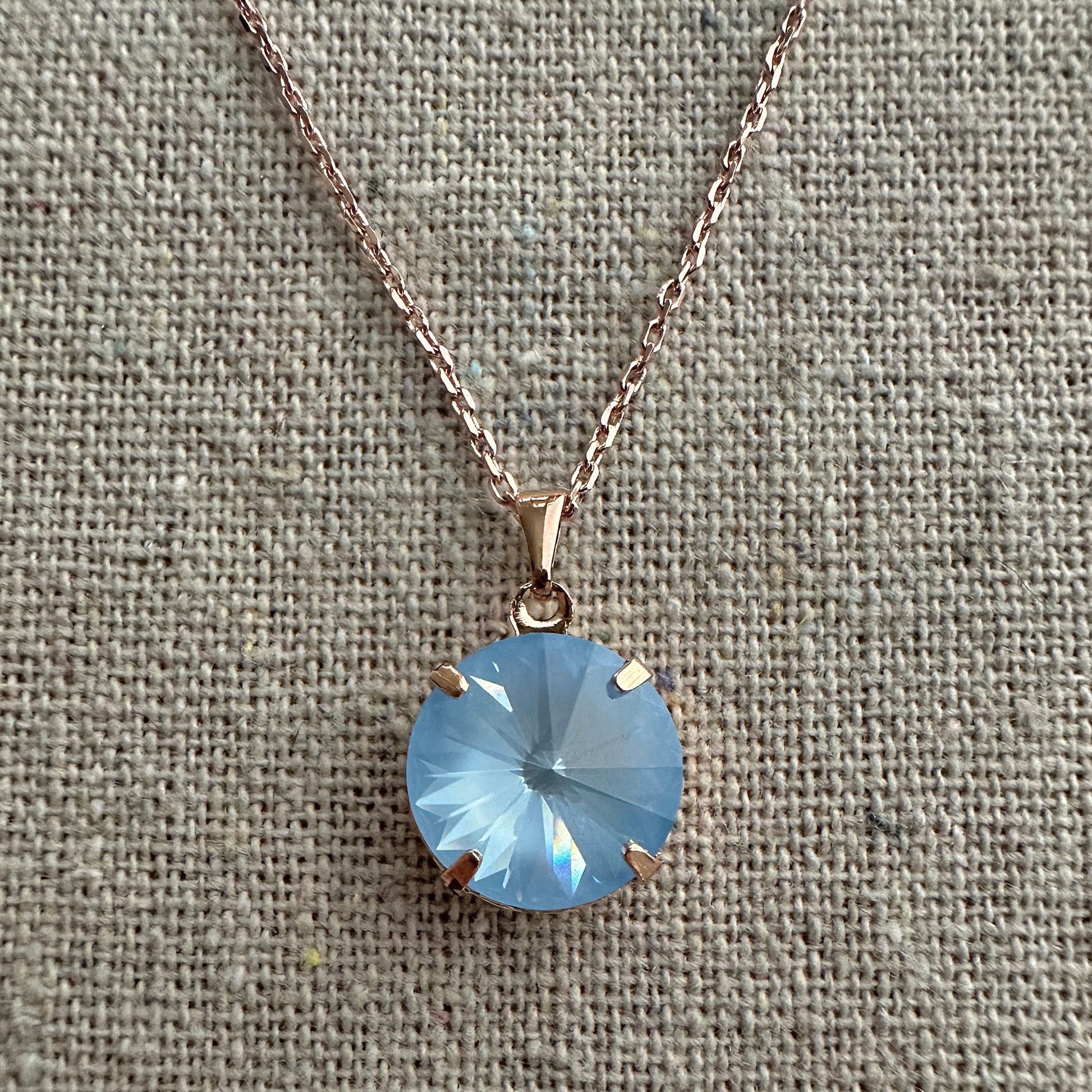You simply won't be able to resist this simple solitaire necklace.. A single 12mm rivoli cut Swarovski® crystal in a classic prong setting on a delicate cable chain. *Shown in Sky Ignite.