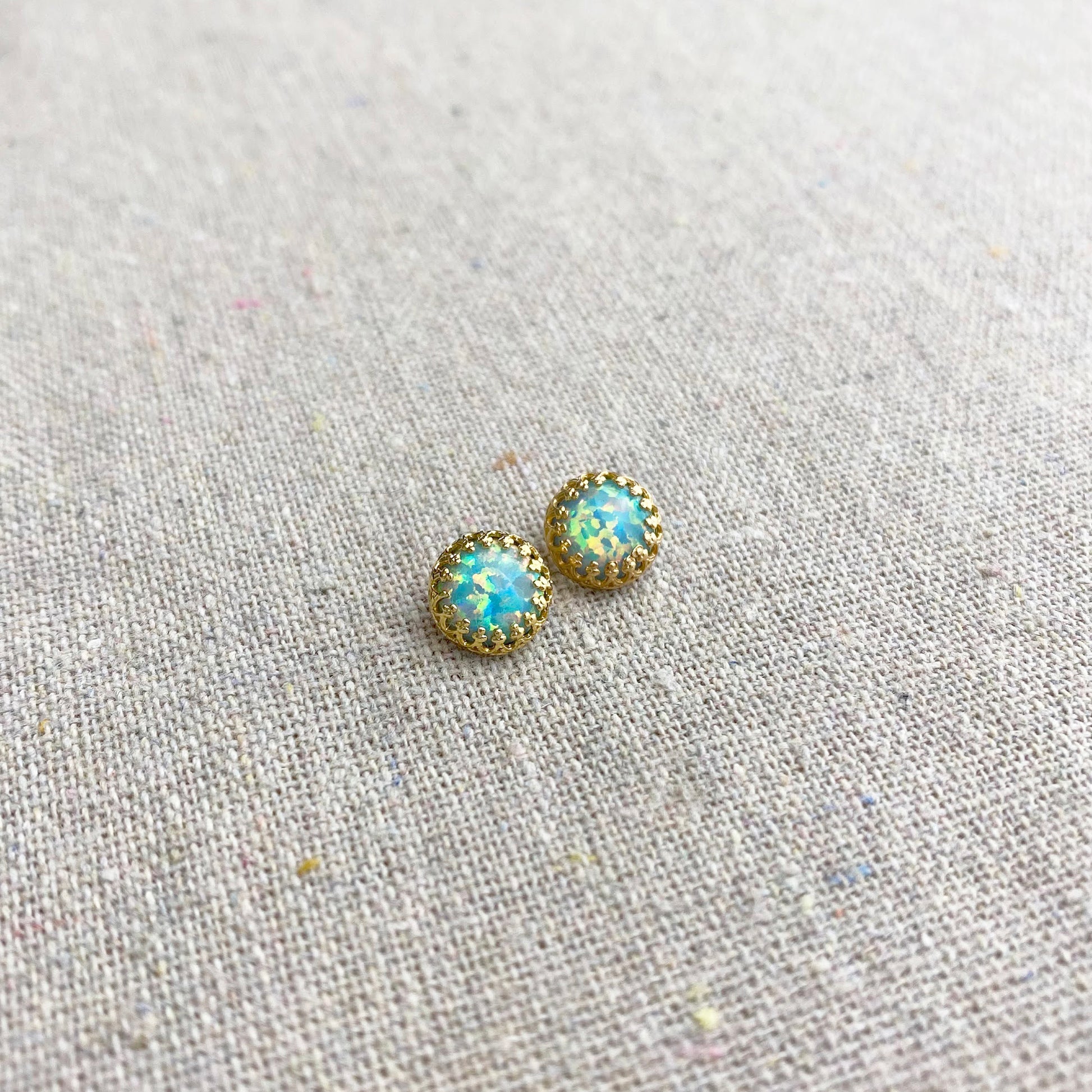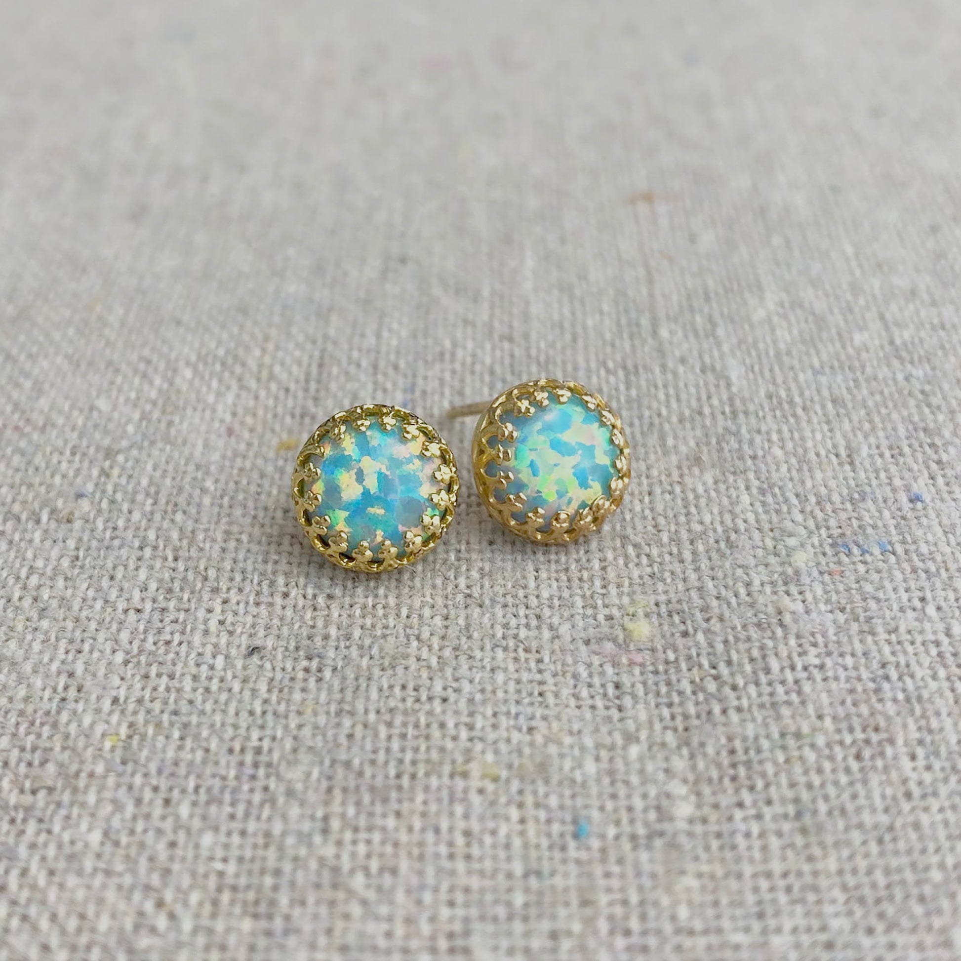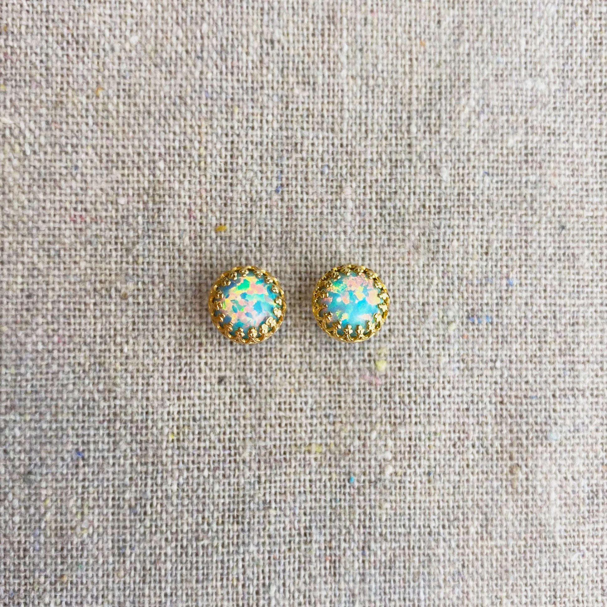 Seafoam Opal Crown Post Earrings • 8mm