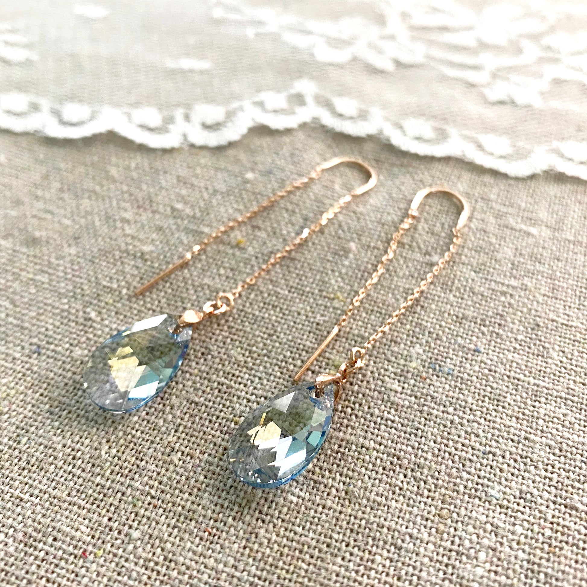 Understated but so, so classy these earrings are nothing but sleek. The daintiest cable chain threader earrings showcasing 16mm Swarovski® crystal teardrops.