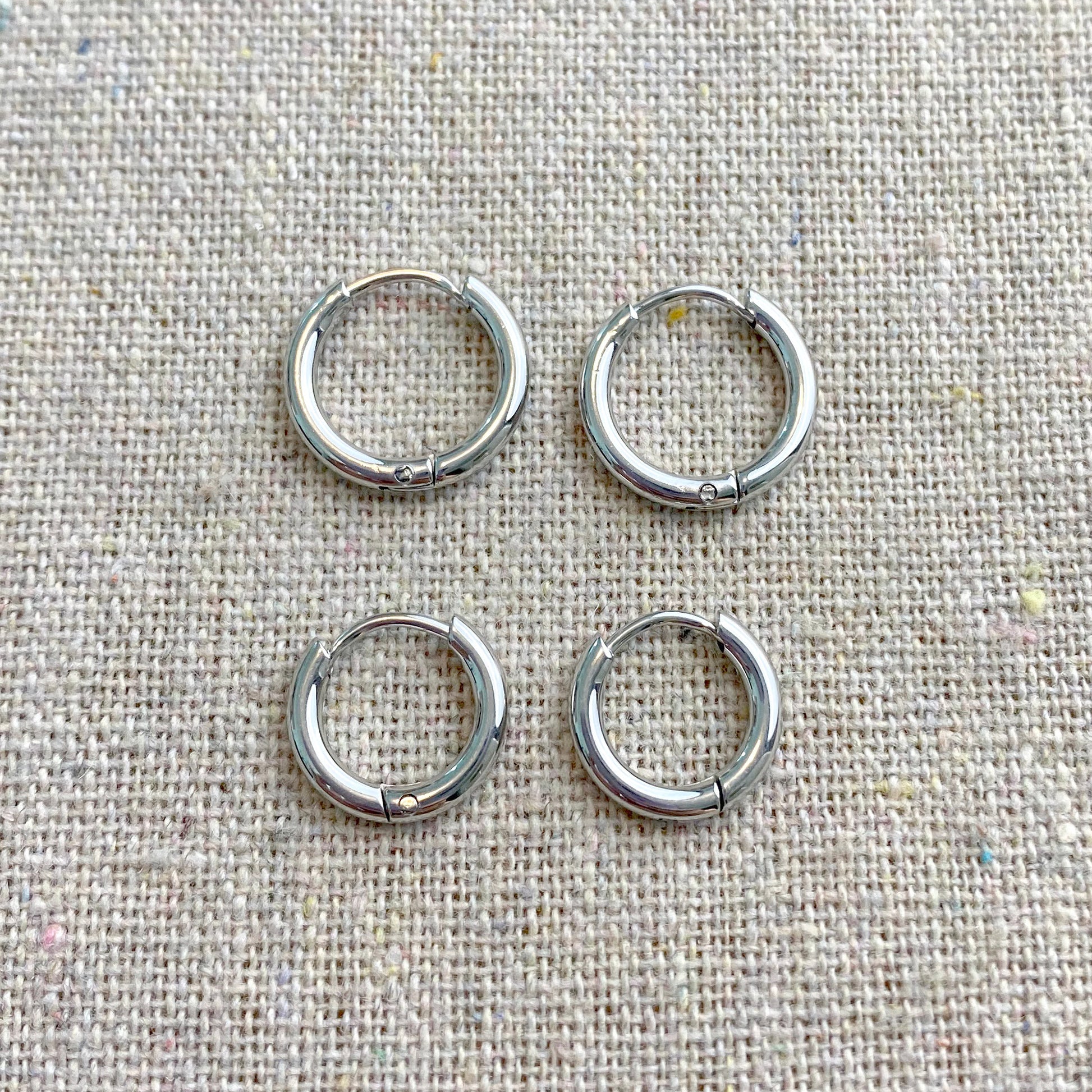 The perfect minimalist hinged huggie hoops that are so comfortable. Choose between 2 popular sizes and 3 finishes, or mix + match!