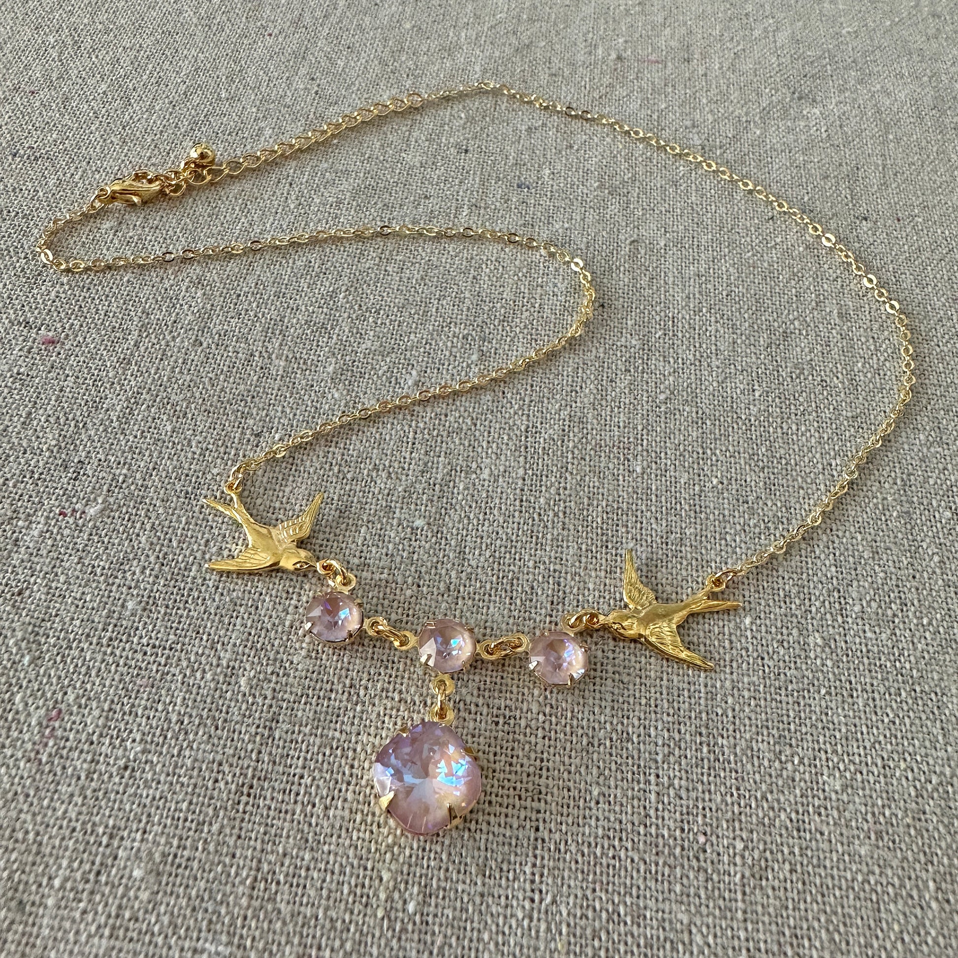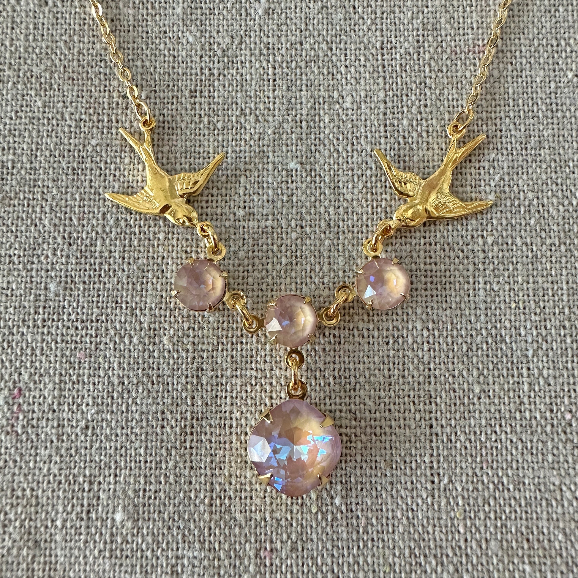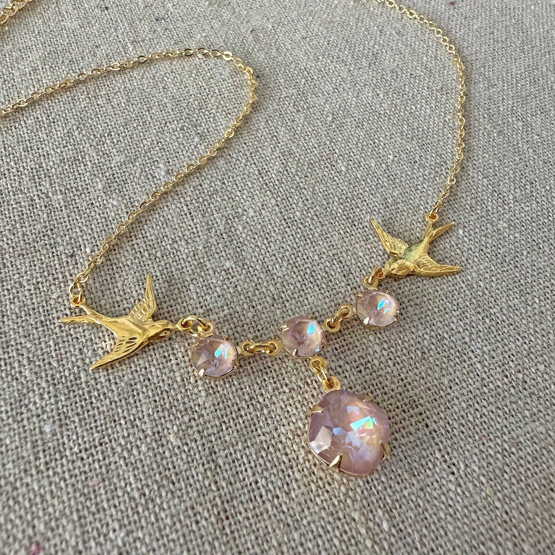 Make a real statement with the Swooping Swallows Necklace! This whimsical necklace features two graceful swallows embellished with Xirius chaton & cushion cut Swarovski® crystals. Let your style take flight and soar - it's a sure takeoff from the ordinary!