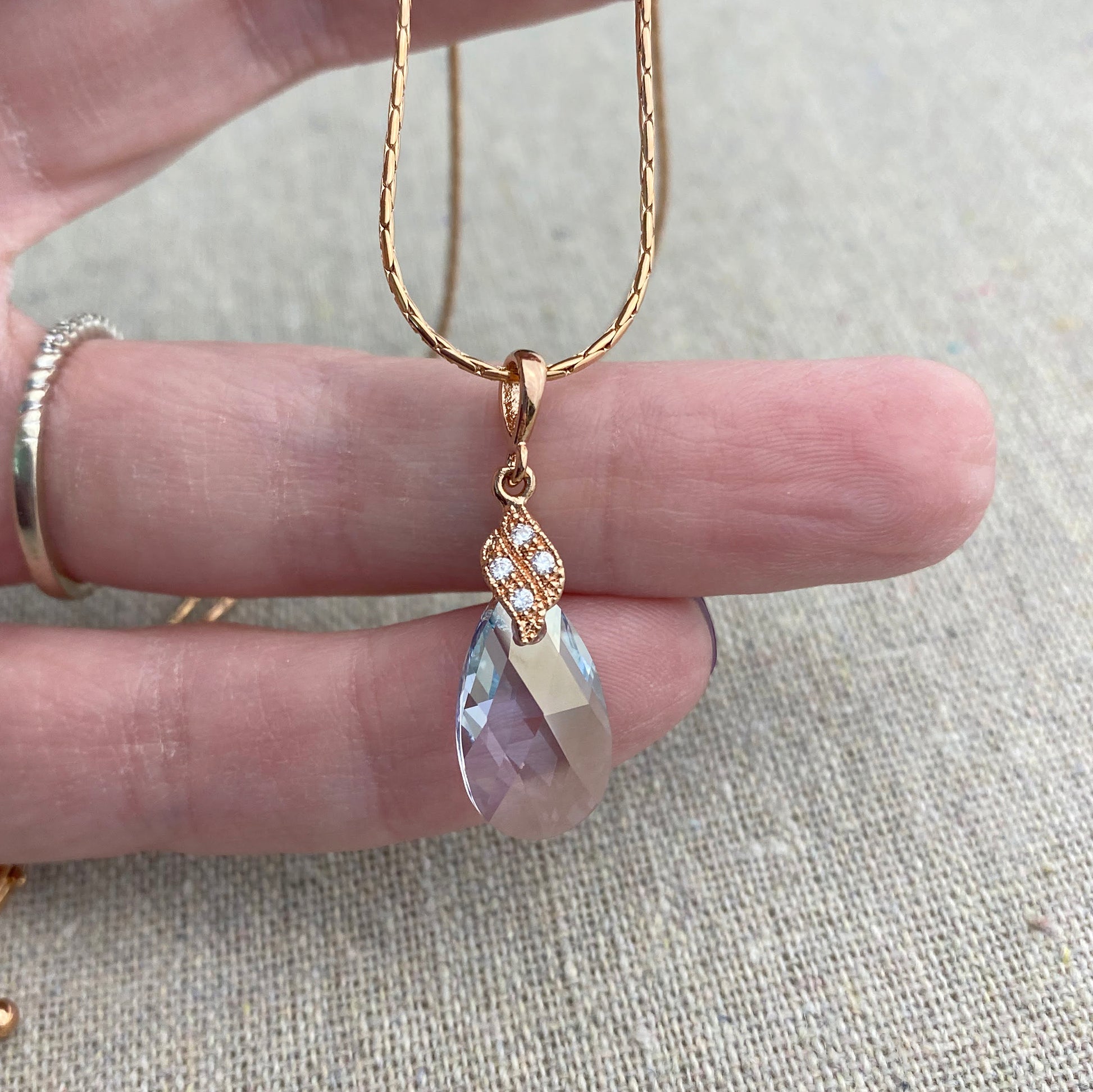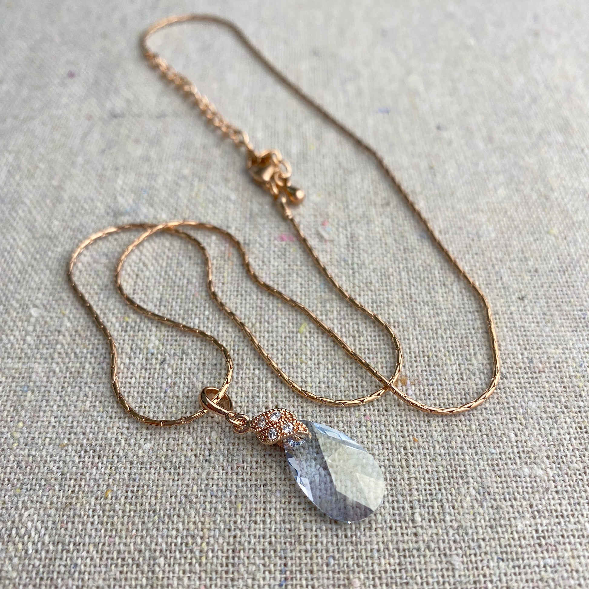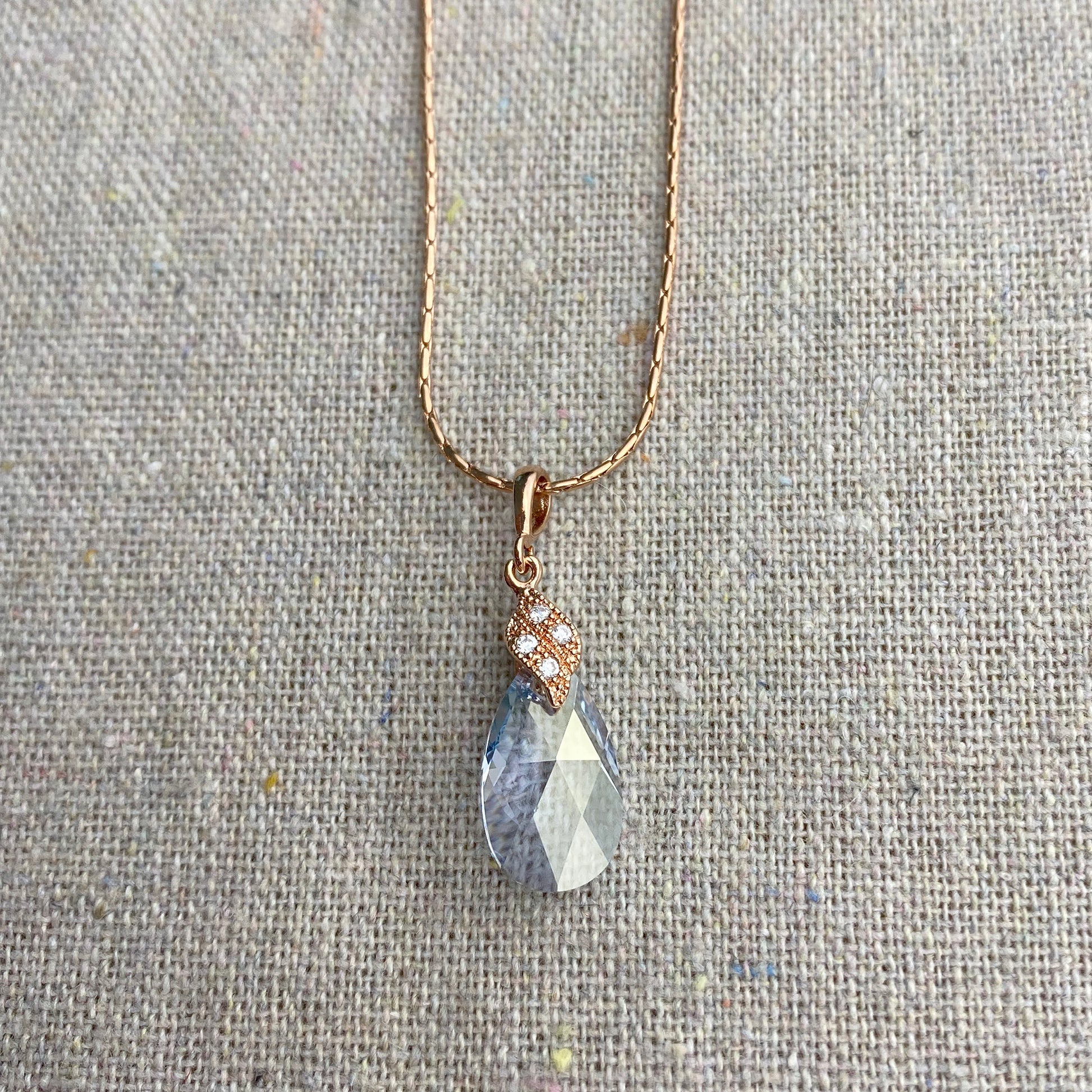 A classically beautiful yet simple necklace made for your big day featuring a teardrop Swarovski® crystal with cubic zirconia pavé details. The Tina earrings are sold separately to make the perfect set. The necklace shown is rose gold and French blue color crystal.