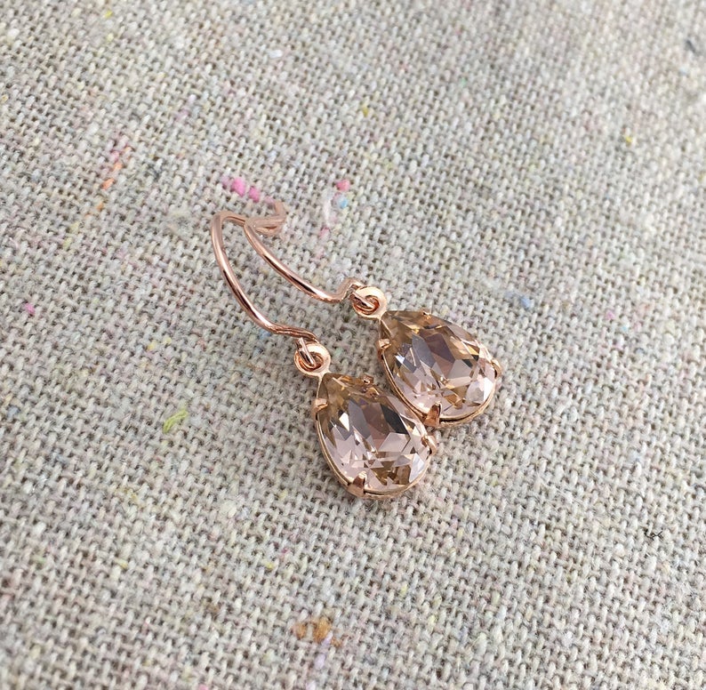 These tiny solitaire drop earrings are so popular because of their versatility. A pear shape Swarovski® crystal dangling from earring hooks adds a classic and elegant look.