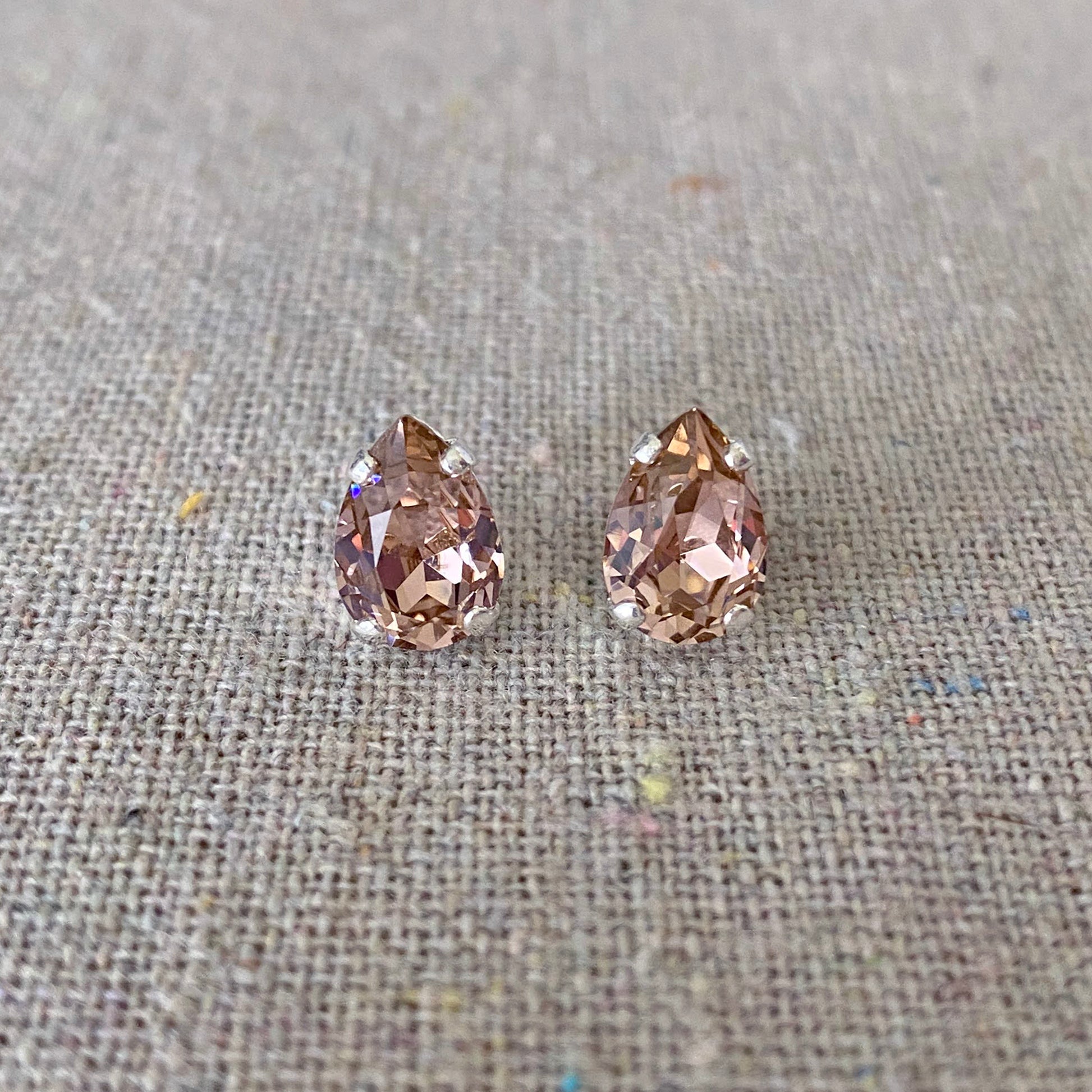 A daintier take on the simple and stylish 'pear' earrings, made with a pear shape crystal shown here in blush pink and gold plated. These are a classic silhouette that are effortless to wear for any occasion.